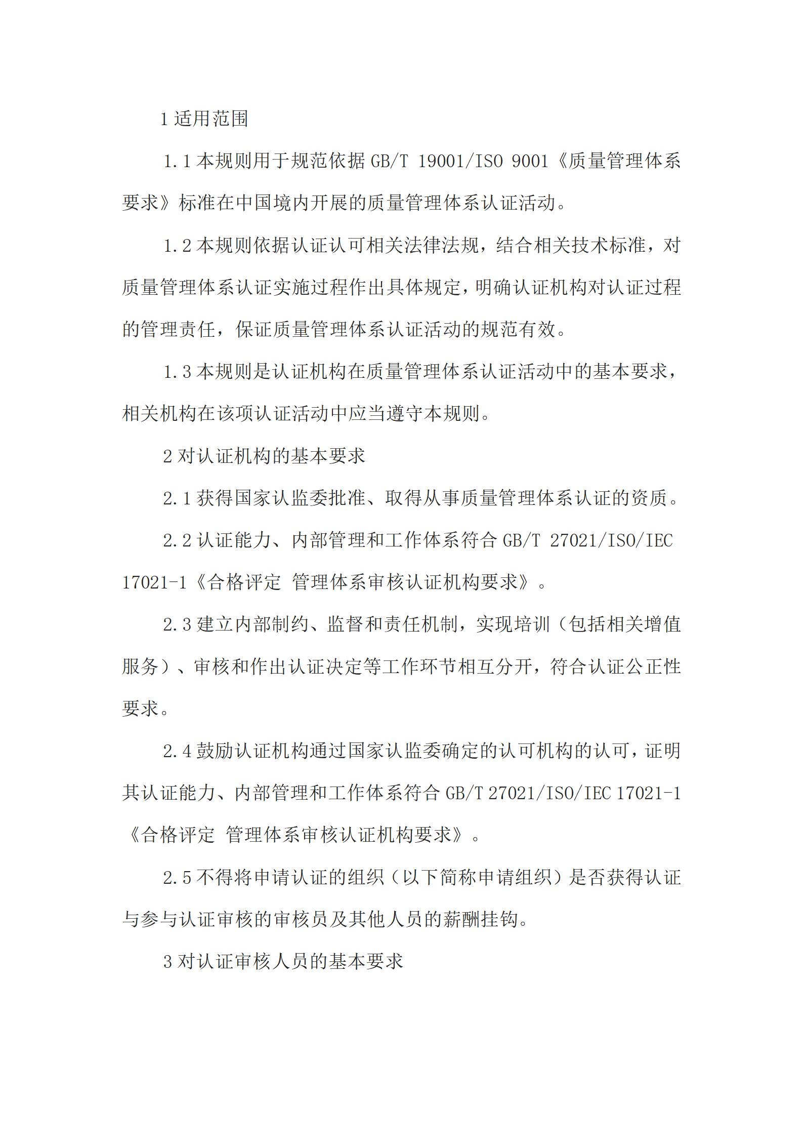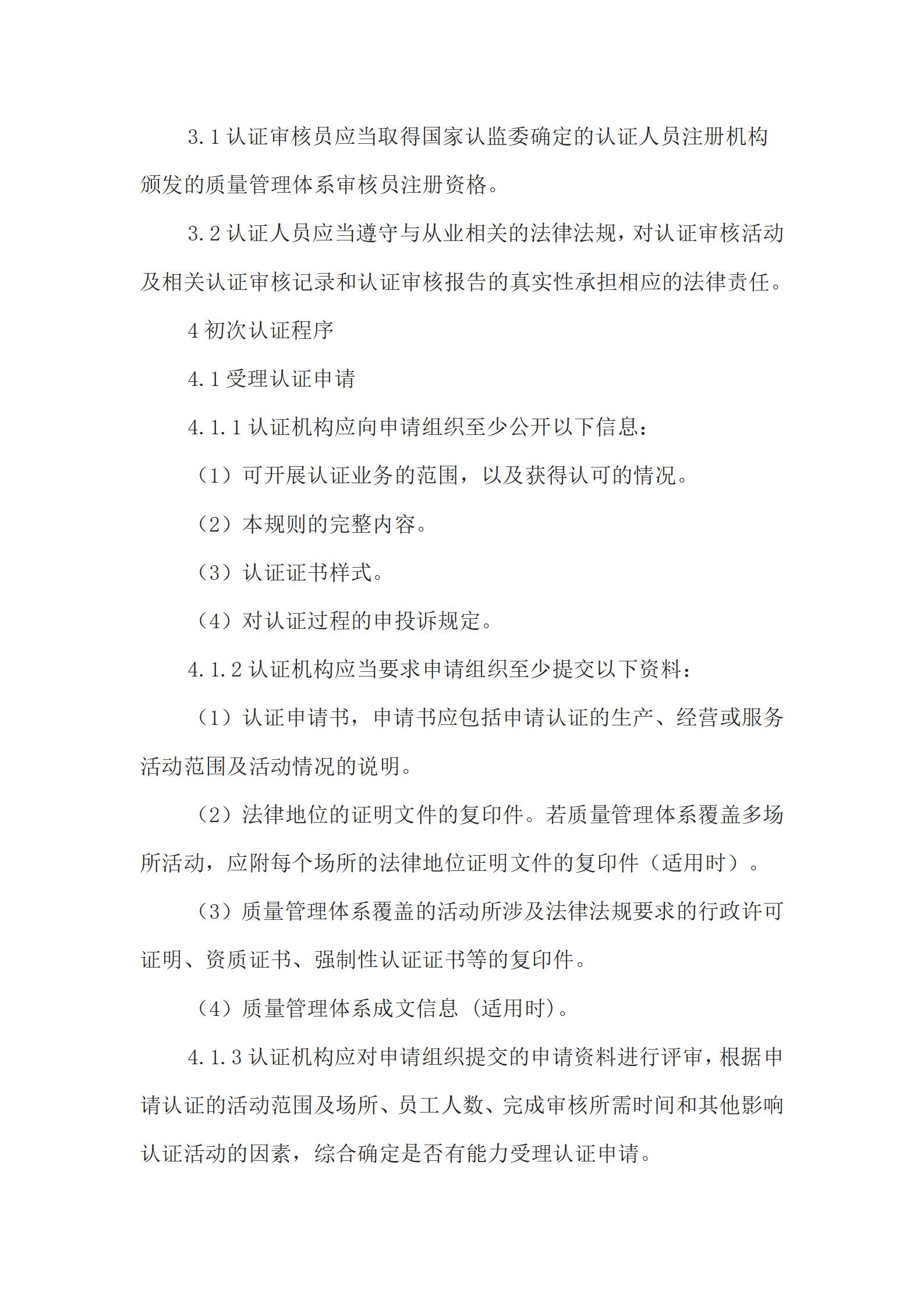 质量管理体系认证实施规则