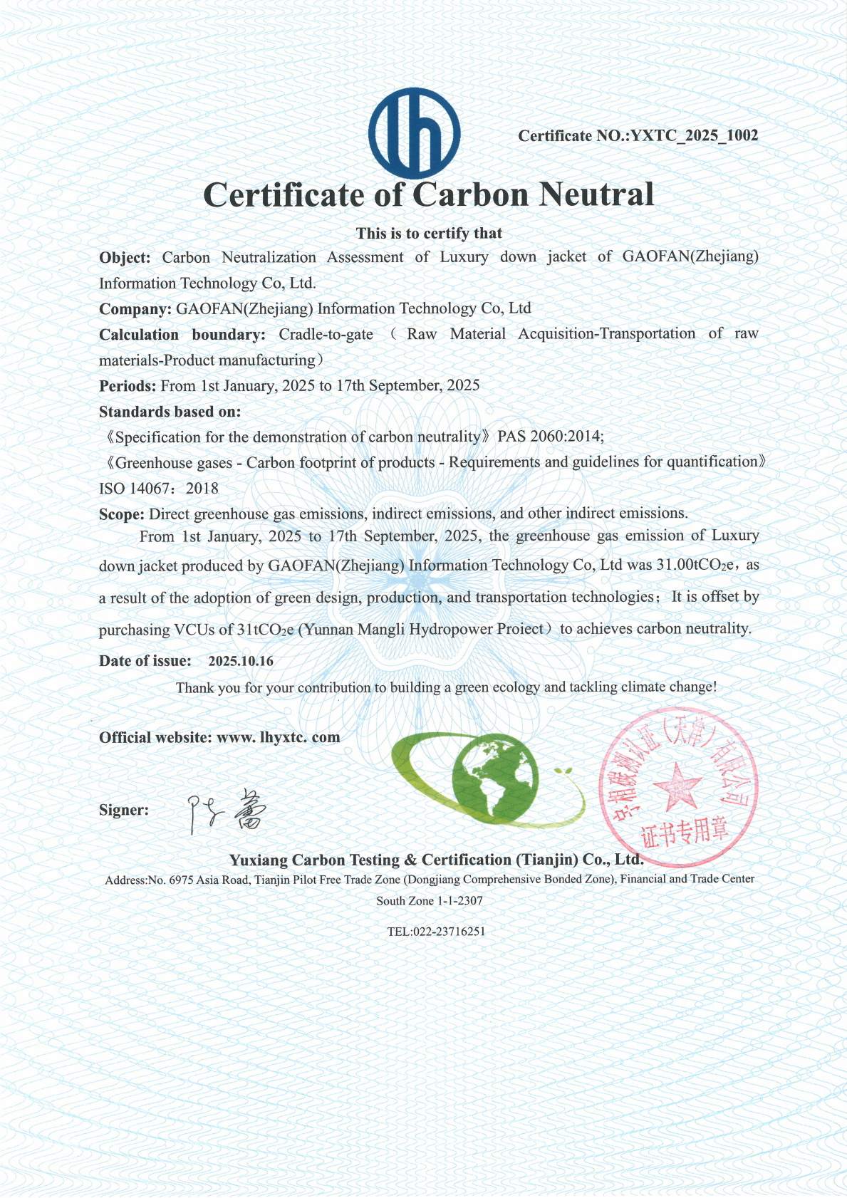 YXTC_2025_1002高梵(浙江)信息技术有限公司碳中和证书