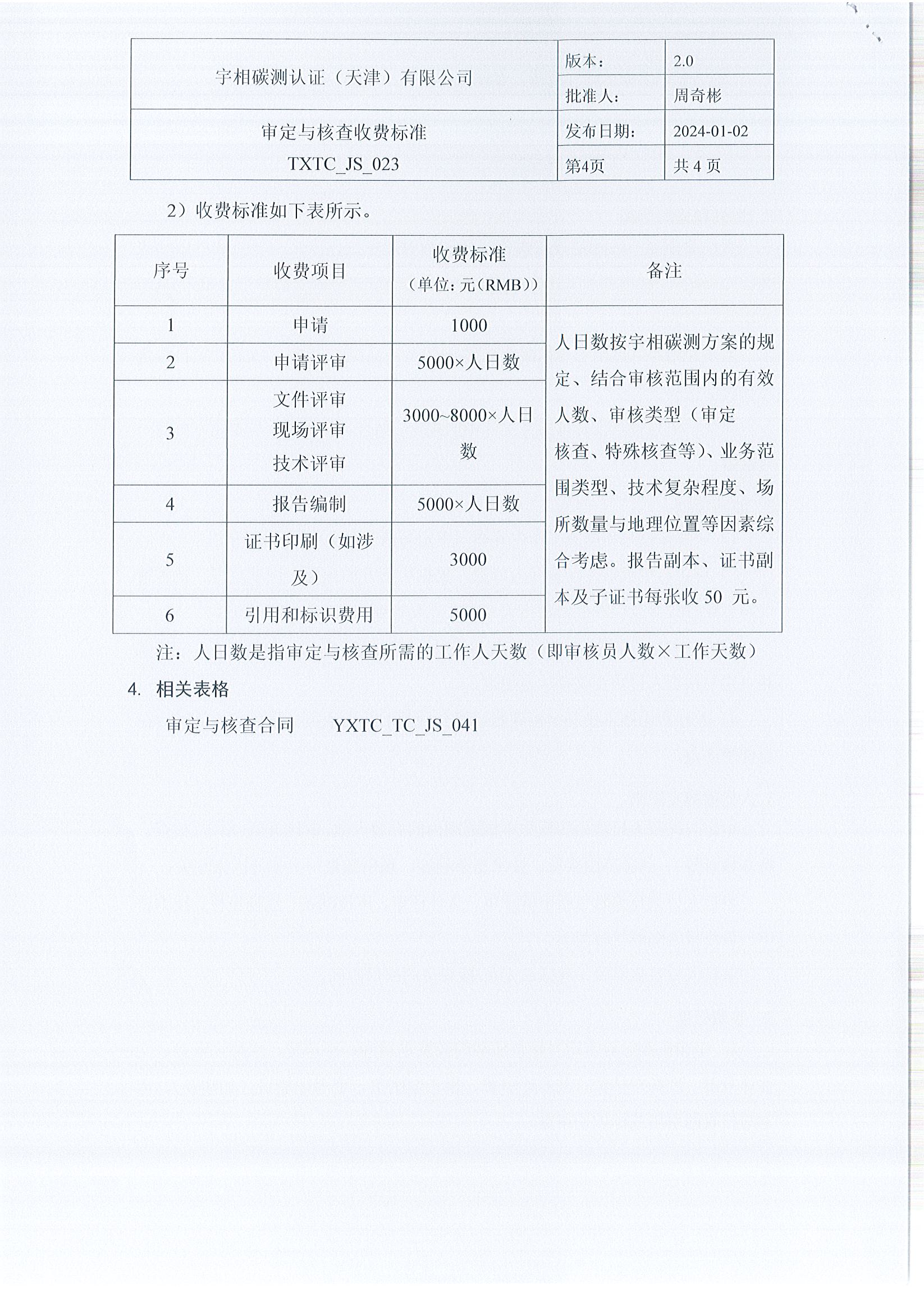 审定与核查收费标准