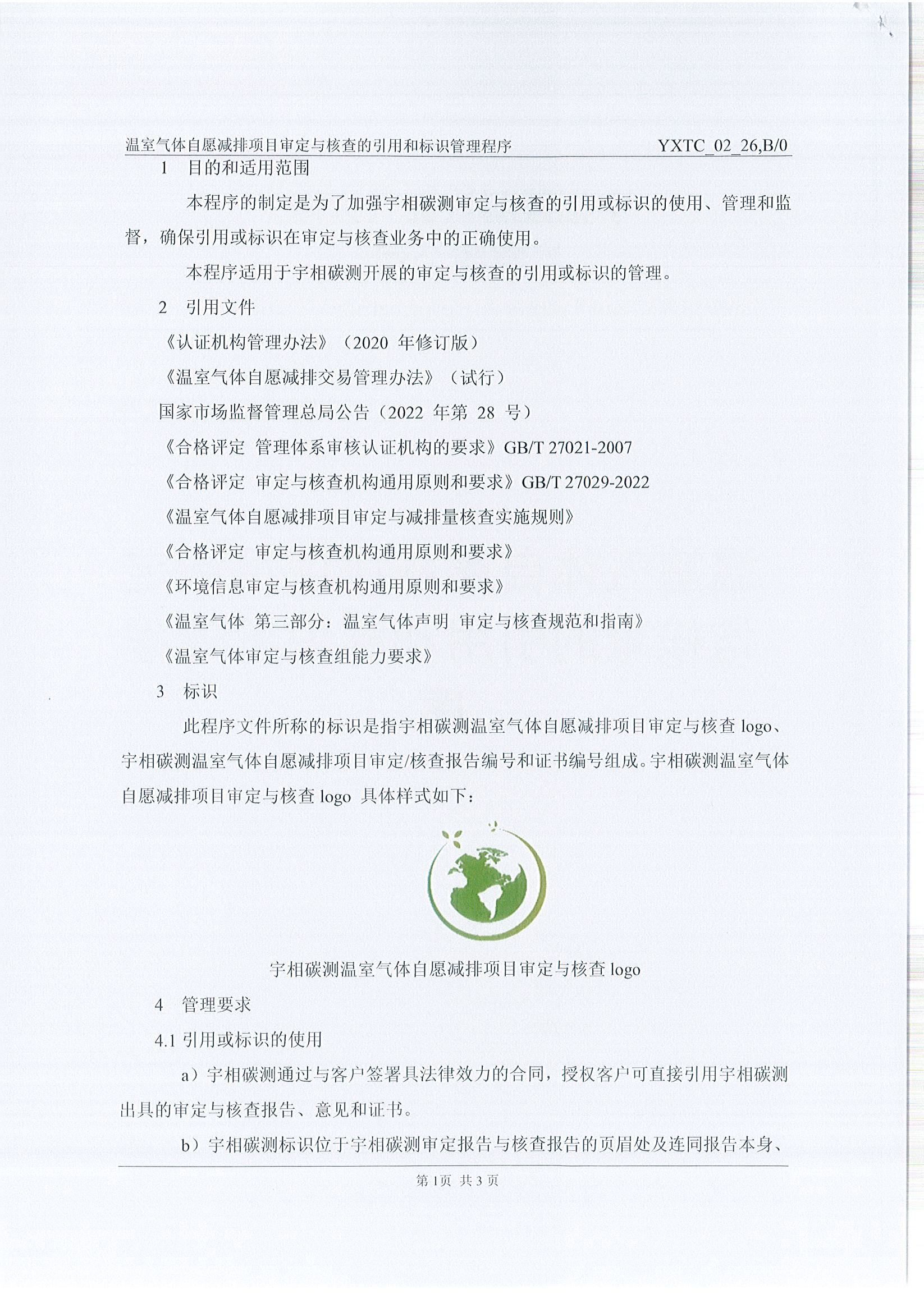 温室气体自愿减排项目审定与核查的引用和标识管理程序